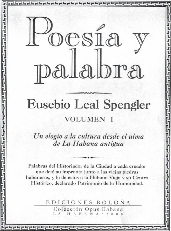 Eusebio Leal Spengler. "Poesía y palabra". Volumen I. Ediciones Boloña. La Habana, 2000